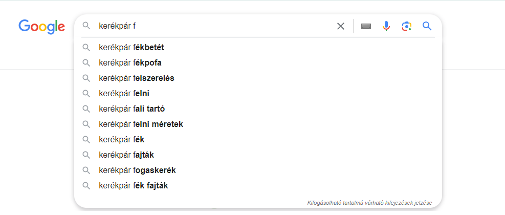 Ez a módszer úgy működik, hogy a Google keresőmezőbe beírt kulcsszavakra azonnal javaslatokat kínál, melyeket az algoritmus az eddigi keresési adatok alapján generál.