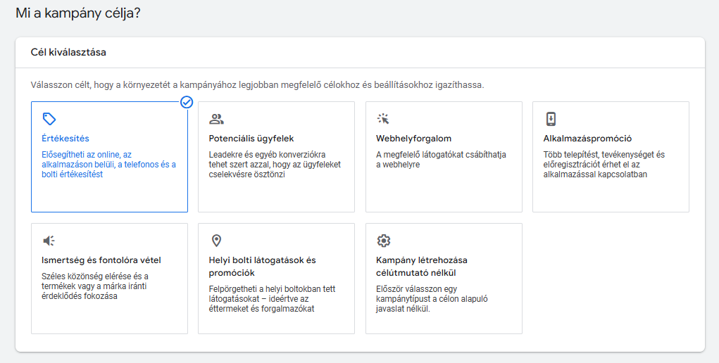 Lépésről lépésre útmutató a pMax kampány létrehozásához