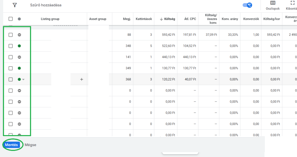 Ez különösen akkor fontos, ha például több 100-1000 terméket forgalmazol, akkor felesleges azokat hirdetni amik csak viszik a pénzt, ez esetben ki kell zárni őket.