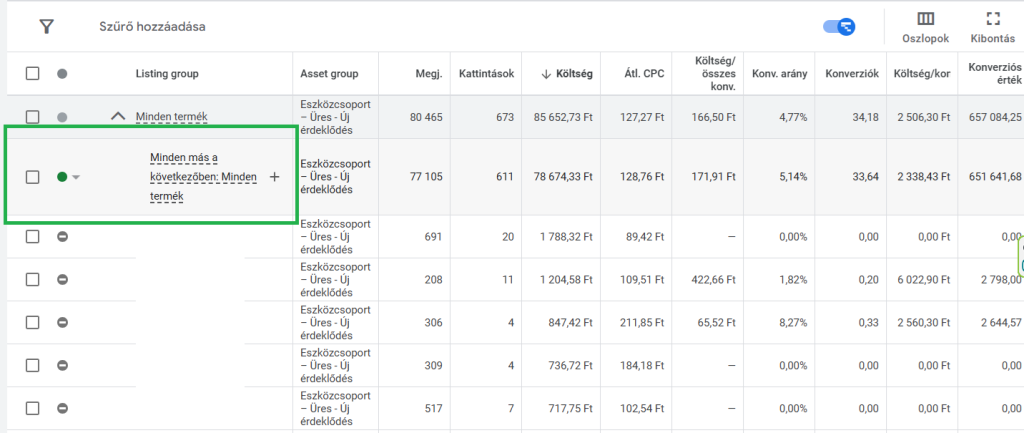 Tapasztalataim szerint sok fiókban tényleg jobban teljesít, mint más Google Ads kampánytípusok – viszont ez nem jelenti azt, hogy mindig ez a nyerő. Volt már olyan eset, amikor egy sima Shopping kampány hozott jobb eredményeket.