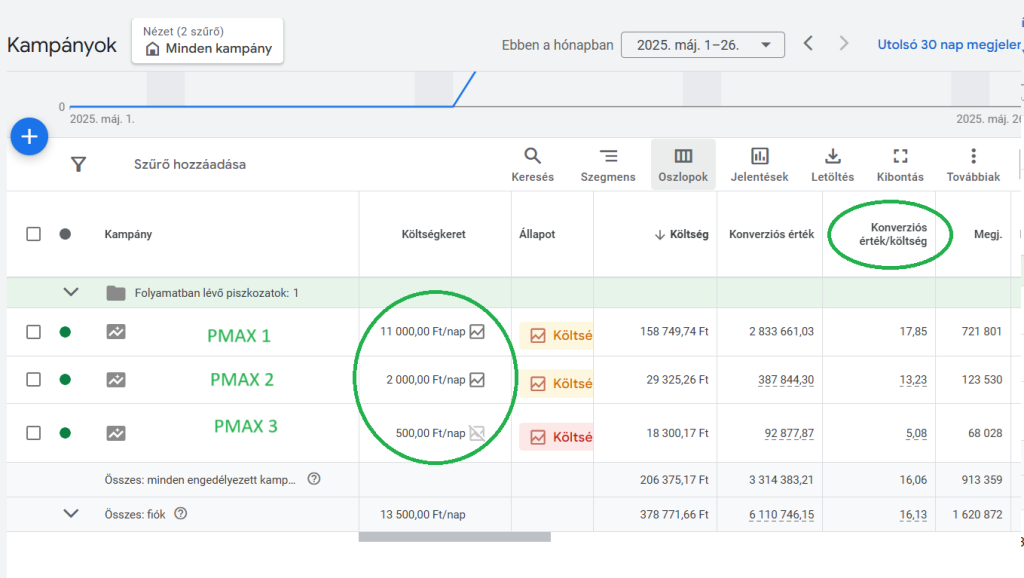 Viszont a PMax nem egy „beállítom és elfelejtem” csodaszer. Ahhoz, hogy igazán ki tudd aknázni a benne rejlő potenciált és maximalizálni a hirdetési kiadásaid megtérülését (ROAS), tudatosan kell optimalizálnod.